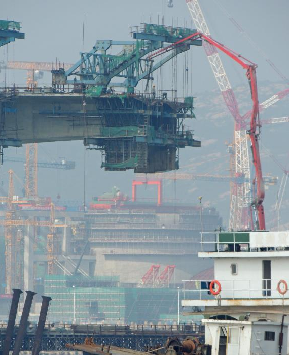 进入9月份,江苏连云港市首座跨海大桥承台、墩身、盖梁全部完工,大桥施工重点全部向上部结构转化,箱梁架设、挂篮浇筑等施工项目有序推进,预计今年年底实现全桥贯通。这座跨海大桥起点为连云区高公岛,终点为海滨大道徐圩段,全长4.482公里,桥面宽34米,设计车速每小时60公里。