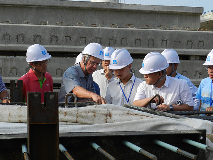 热诚接待了奥雅纳与中建建筑考察团,我公司无论从技术还是规模均满足该工程技术规范、工程图纸要求、国家相关标准、规范和现行的英国及文莱国的规范及主合同要求。同时,施工现场满足中国建筑第六工程局有限公司“淡布隆大桥项目CC4标段-淡布隆高架桥项目”文明工地的要求。合同总工期历时三年多。